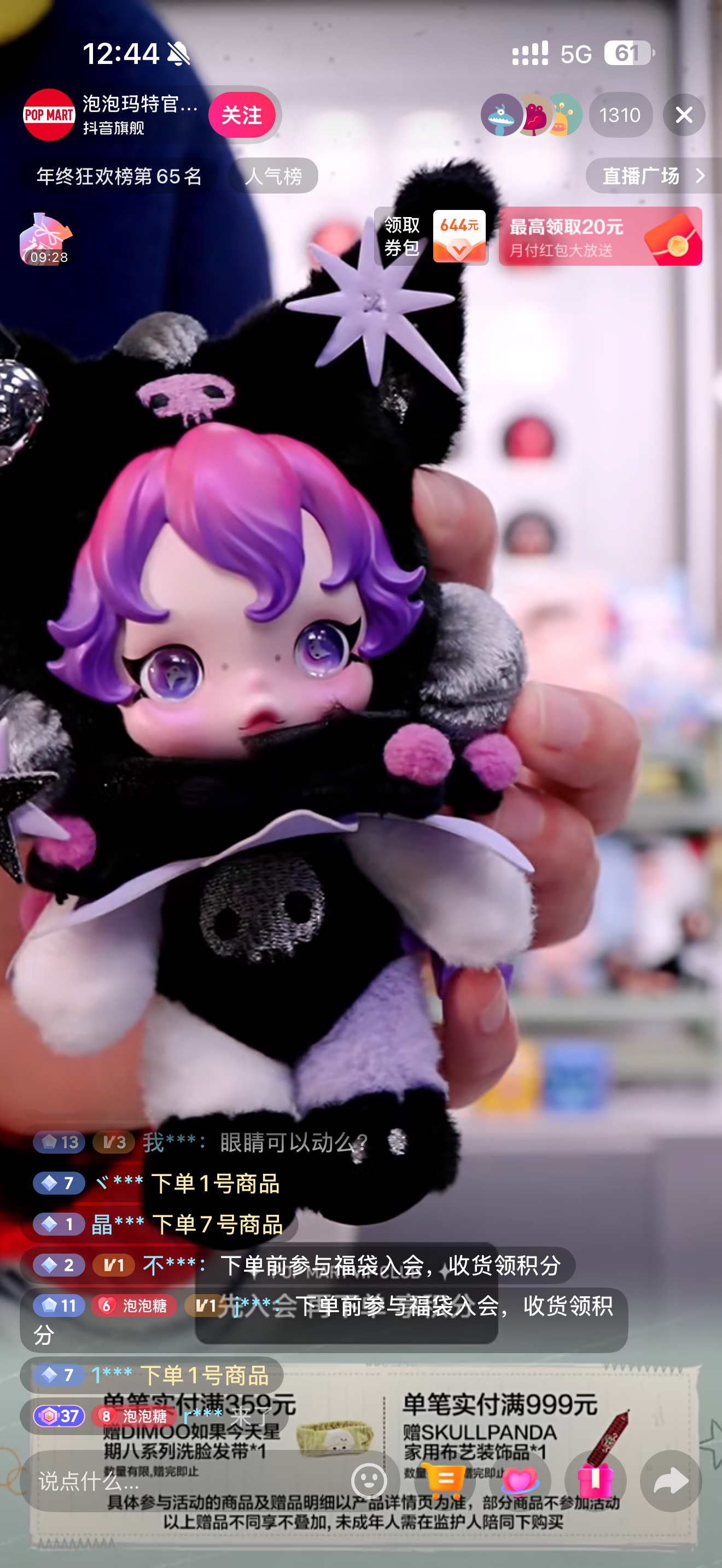 新品sp联名库洛米毛绒挂件抖音直播间售出1.5万单